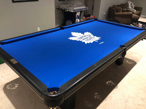 -Designs are printed on tournament grade Hainsworth Elite Pro worsted pool table felt with a 70/30 wool and nylon blend. All logos are incorporated into the material to ensure consistent ball play.