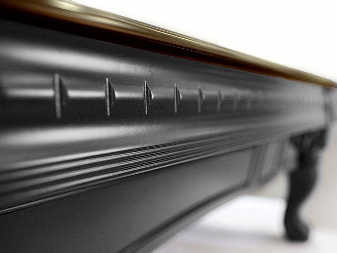Crafted with meticulous attention to detail, the Pinnacle Two Tone Walnut features genuine leather pockets that exude opulence, backed by a solid wood frame with four intricately hand-carved ball-in-claw legs. The table's 1-inch thick natural quarried slate ensures exceptional playability, while its European and North American solid wood construction guarantees durability and longevity.