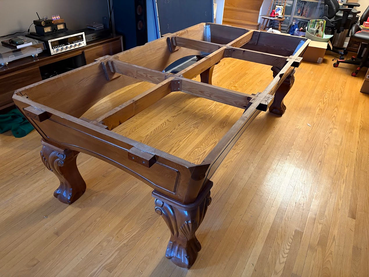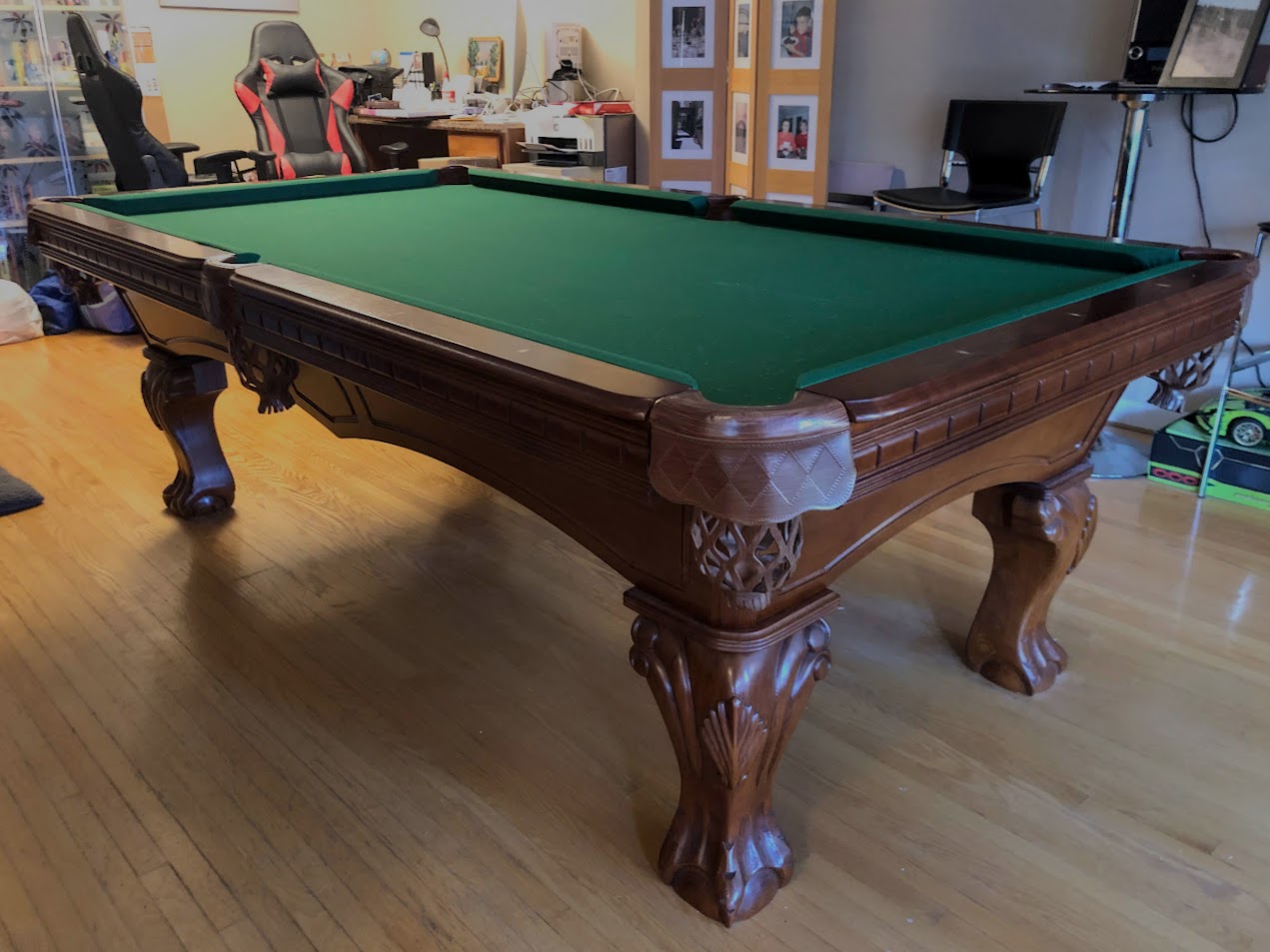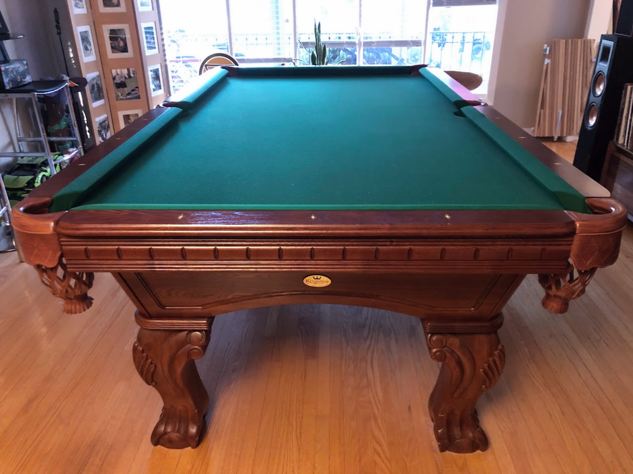 8' PREOWNED KINGSTON BILLIARDS SOLID WOOD SLATE POOL TABLE INSTALLED WITH ACCESSORIES