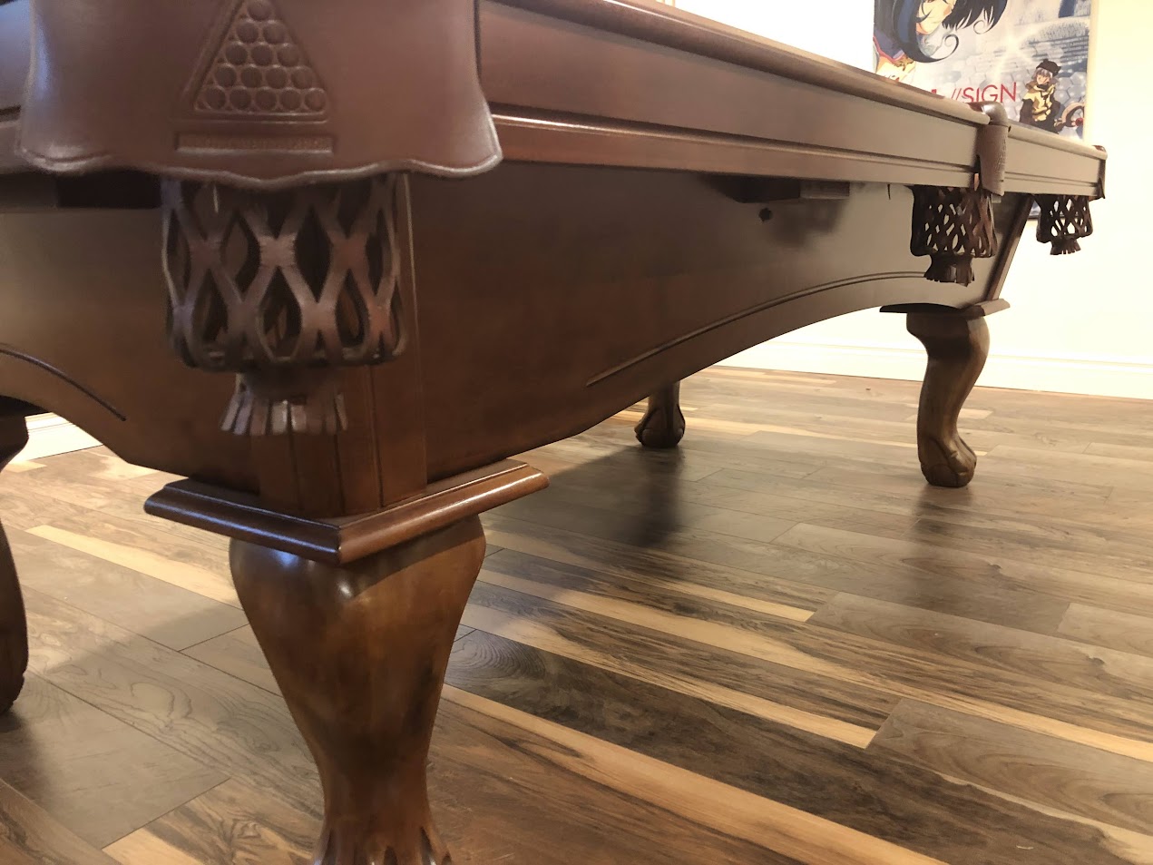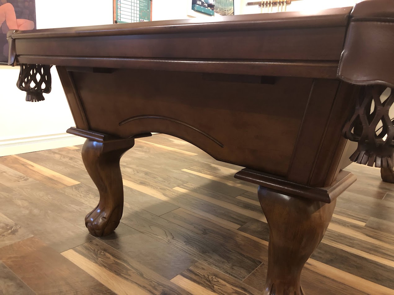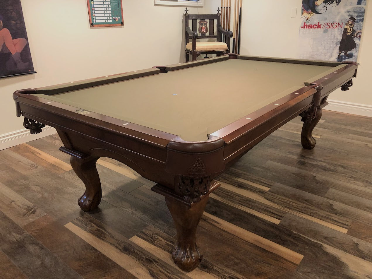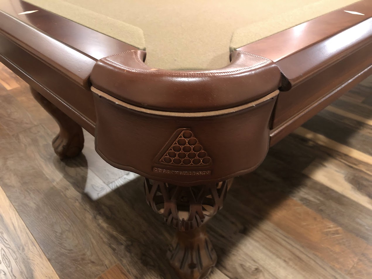 While this is a preowned table, it has been meticulously maintained and remains in excellent mint condition. We'll install fresh, high-quality felt in the color of your choice, giving you a like-new playing experience at a fraction of the cost of a new table.