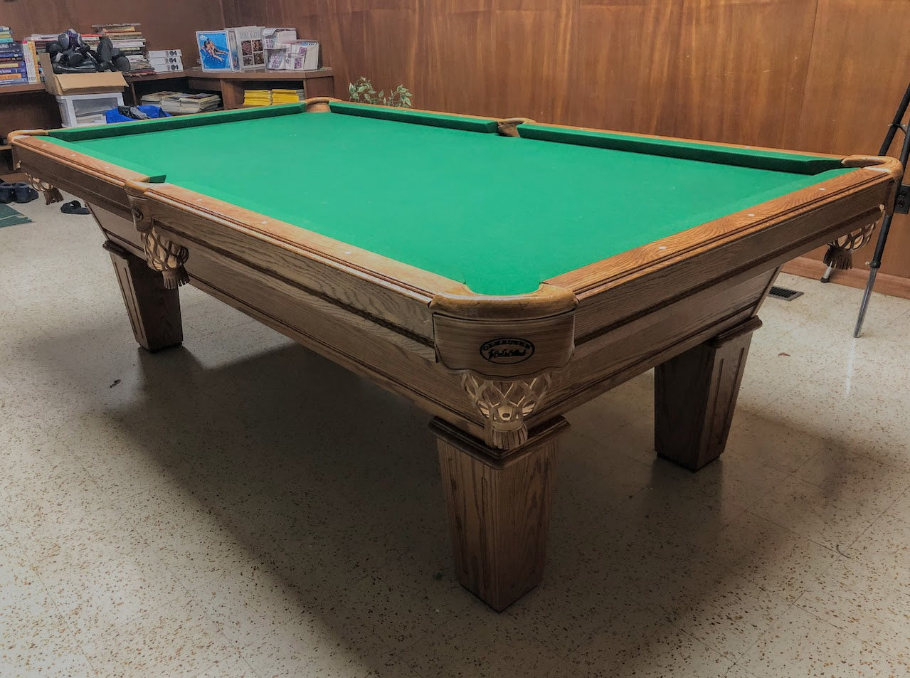 PREOWNED 8' OLHAUSEN AUGUSTA POOL TABLE INSTALLED WITH ACCESOORIES